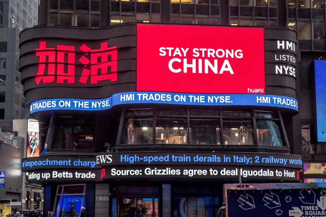纽约时代广场为中国“加油”